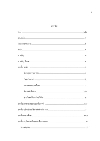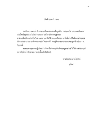 นื้อหาและสานวนภาษาด้วยความเอาใจใส่อย่างดียิ่ง คณะผู้ศึกษาขอกราบขอบพระคุณเป็นอย่างสูง ณ