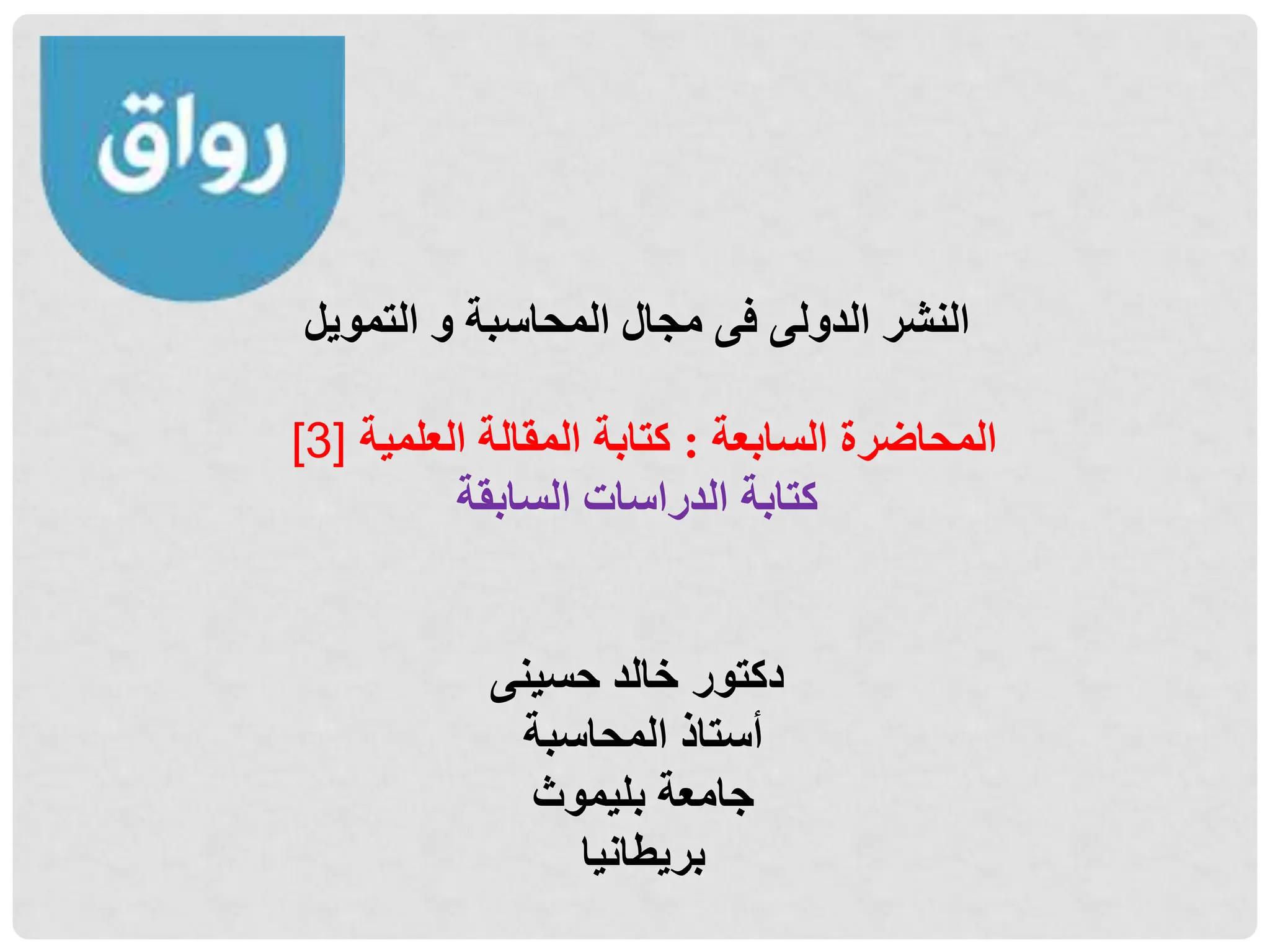 تناقش المحاضرة حول كيفية كتابة المراجعة الأدبية من خلال تحديد مفهومها وأهميتها، وتقديم نصائح للباحثين في هذا المجال. تشمل النقاط الرئيسية تقييم المصادر السابقة والتأكد من توضيح الفجوات البحثية واستعراض المعلومات ذات الصلة. تأتي هذه المراجعة لتساعد في تعزيز فهم الباحث للموضوعات الحالية وتوجيه أبحاثه المستقبلية.