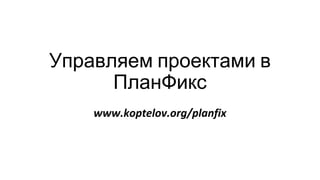 Документ представляет собой план работы с проектами в системе Планфикс и описывает пять ключевых шагов: создание места работы, группировка задач, назначение задач исполнителям, обзор проекта и поддержание порядка в списках задач. Каждый шаг включает детали о практическом применении шаблонов и фильтров для управления проектами. Также указаны ссылки на сайты для упрощения доступа к информации.