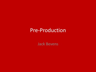 Jack Bevens is preparing for the pre-production of his short film. He has researched fonts and collected images that match the film's genre and storylines. He has also designed layouts for the film's front and back covers, poster, and storyboards. Props, costumes, and filming locations are identified. Contingency plans are in place to address potential issues like actors being unavailable or rooms not being accessible for filming. Health and safety concerns are considered for equipment and preventing eye strain or injuries. A one-week production schedule is outlined, starting with inviting actors and a planning meeting, followed by rehearsals, filming, and editing to complete the short film.