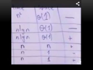 • time complexity: n lg(n) + אם גם עובוד אלגוריתם