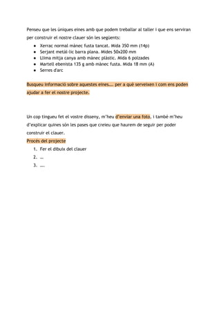 que sigui el nostre clauer i quan tornem a l’institut, si ja tenim el projecte