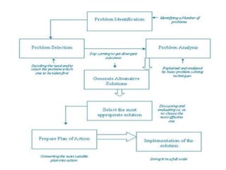 The document discusses 5S and quality circles as tools for total quality management. 5S refers to a system for organizing and standardizing a workplace. It involves sorting, setting in order, shining, standardizing, and sustaining these practices. When implemented through a quality circle, which is a group-based problem solving technique, 5S can lead to benefits like increased productivity, quality and safety while decreasing waste and costs. An example is provided of a community college reprographics shop that saw improved customer service and space optimization from applying 5S through a quality circle.