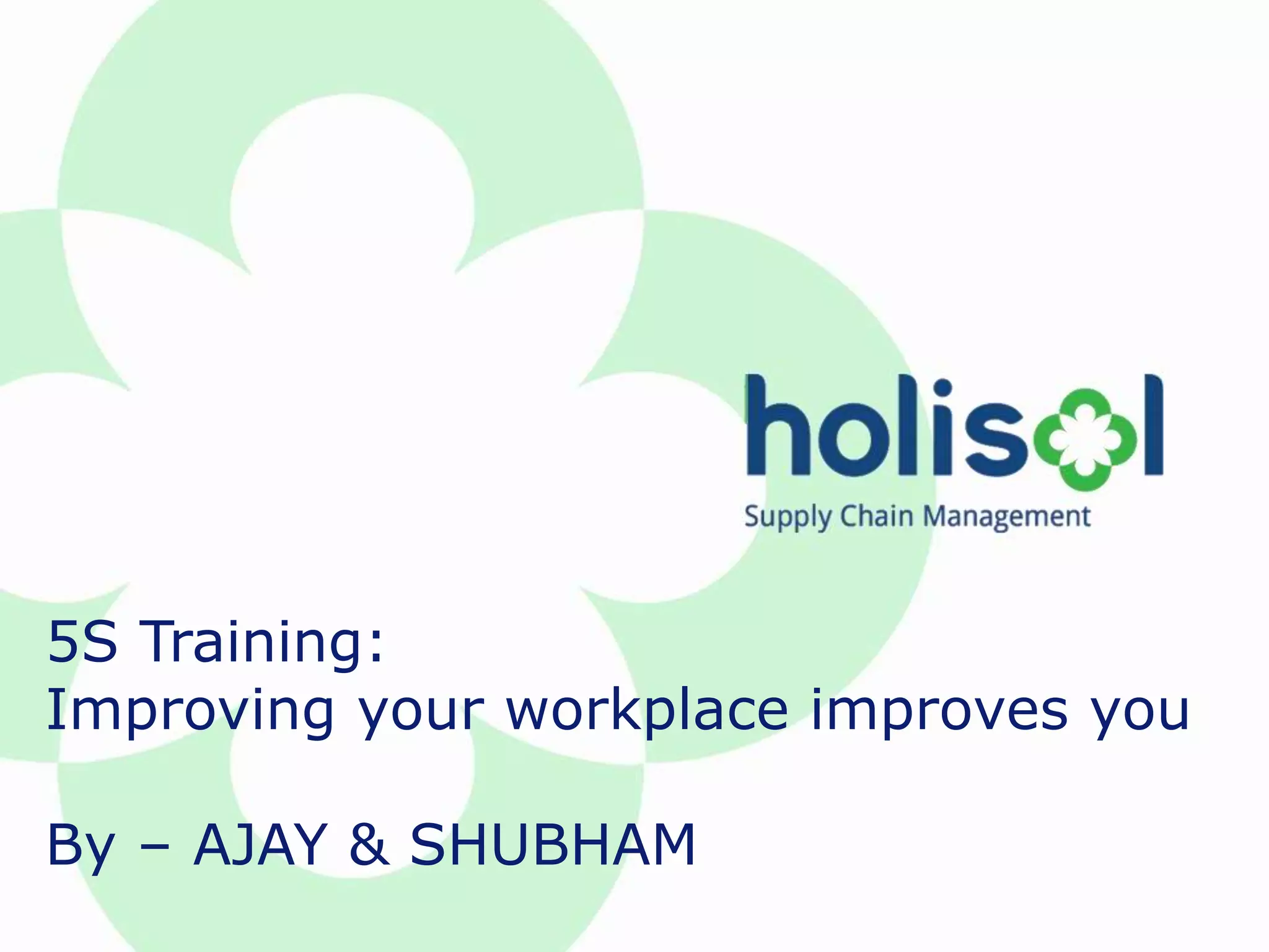 The document provides comprehensive training on the 5S methodology, which stands for Sort, Set in order, Shine, Standardize, and Sustain, aimed at creating an organized and efficient workplace. It outlines each 'S' in detail, including objectives, steps, checklists, and suggestions for maintaining a clean and productive environment while highlighting the importance of continuous improvement and training in 5S practices. Additionally, it discusses the benefits of implementing 5S, such as increased safety, improved productivity, and reduced costs.