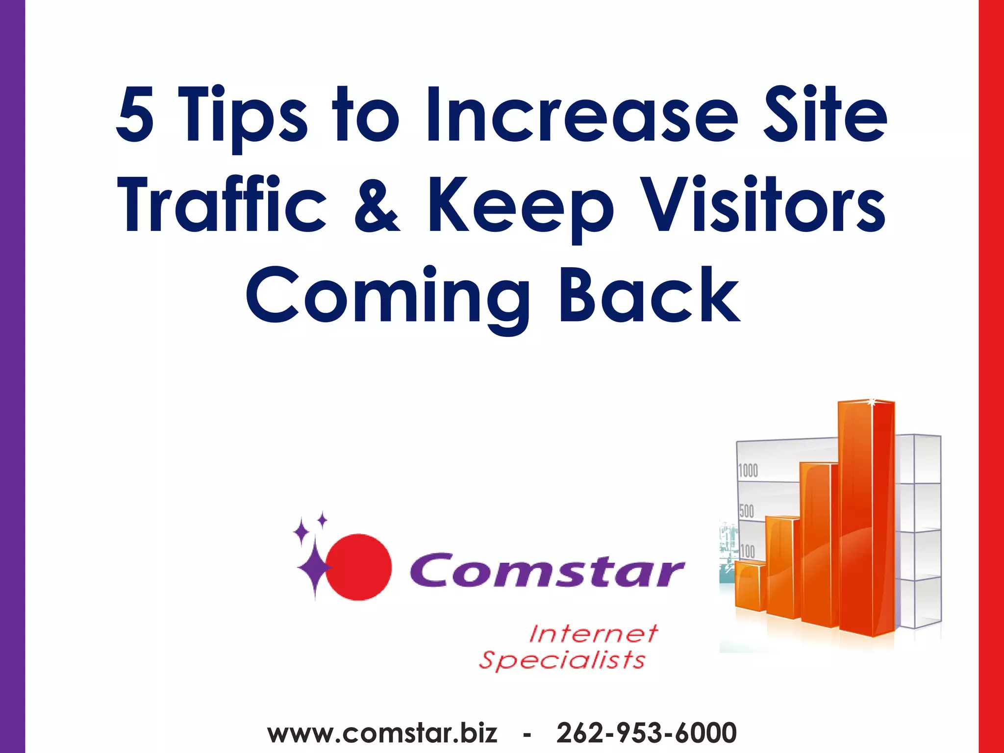 The document provides five tips for increasing website traffic and retaining visitors, highlighting the importance of optimizing page titles, incorporating relevant keywords on the homepage, keeping content fresh, improving links to the site, and starting a blog. It emphasizes that proper keyword usage and regular content updates can significantly enhance search engine rankings and attract more visitors. Additionally, it mentions the role of search engine optimization (SEO) as a long-term strategy for improving organic traffic.