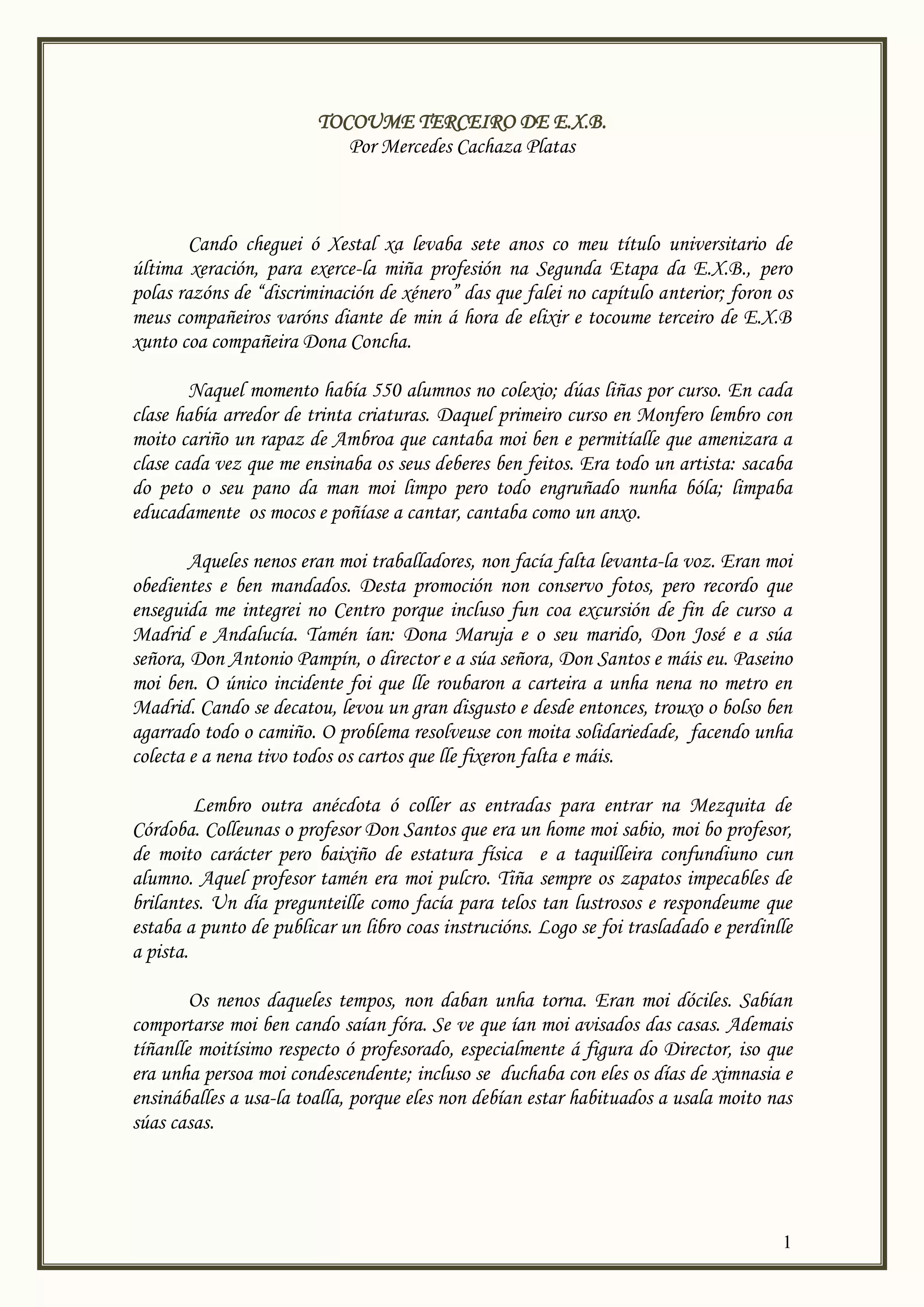 última xeración, para exerce-la miña profesión na Segunda Etapa da E.X.B., pero