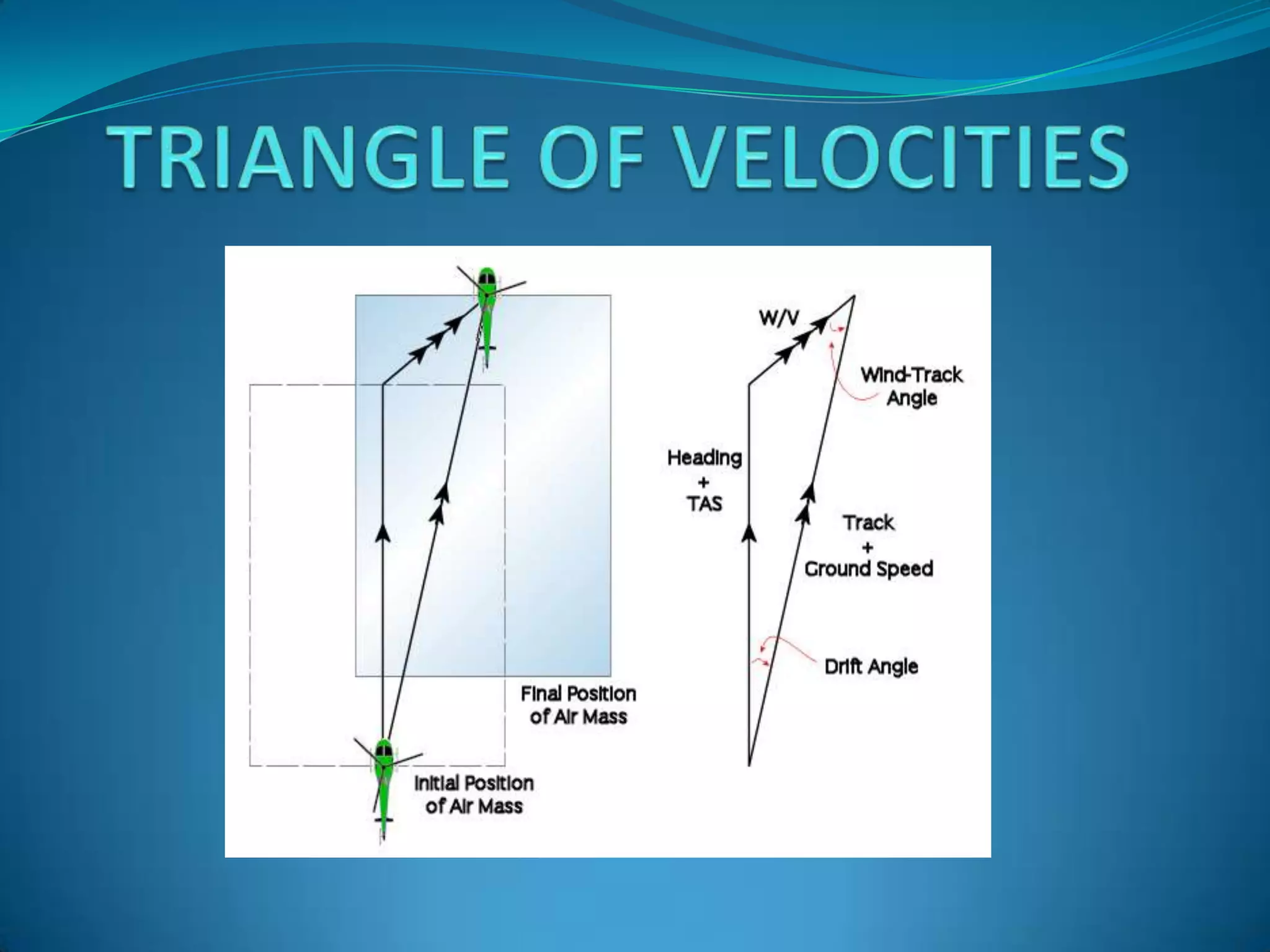 2) Definitions of terms like true airspeed, ground speed, wind direction and velocity, drift angle, and track angle.