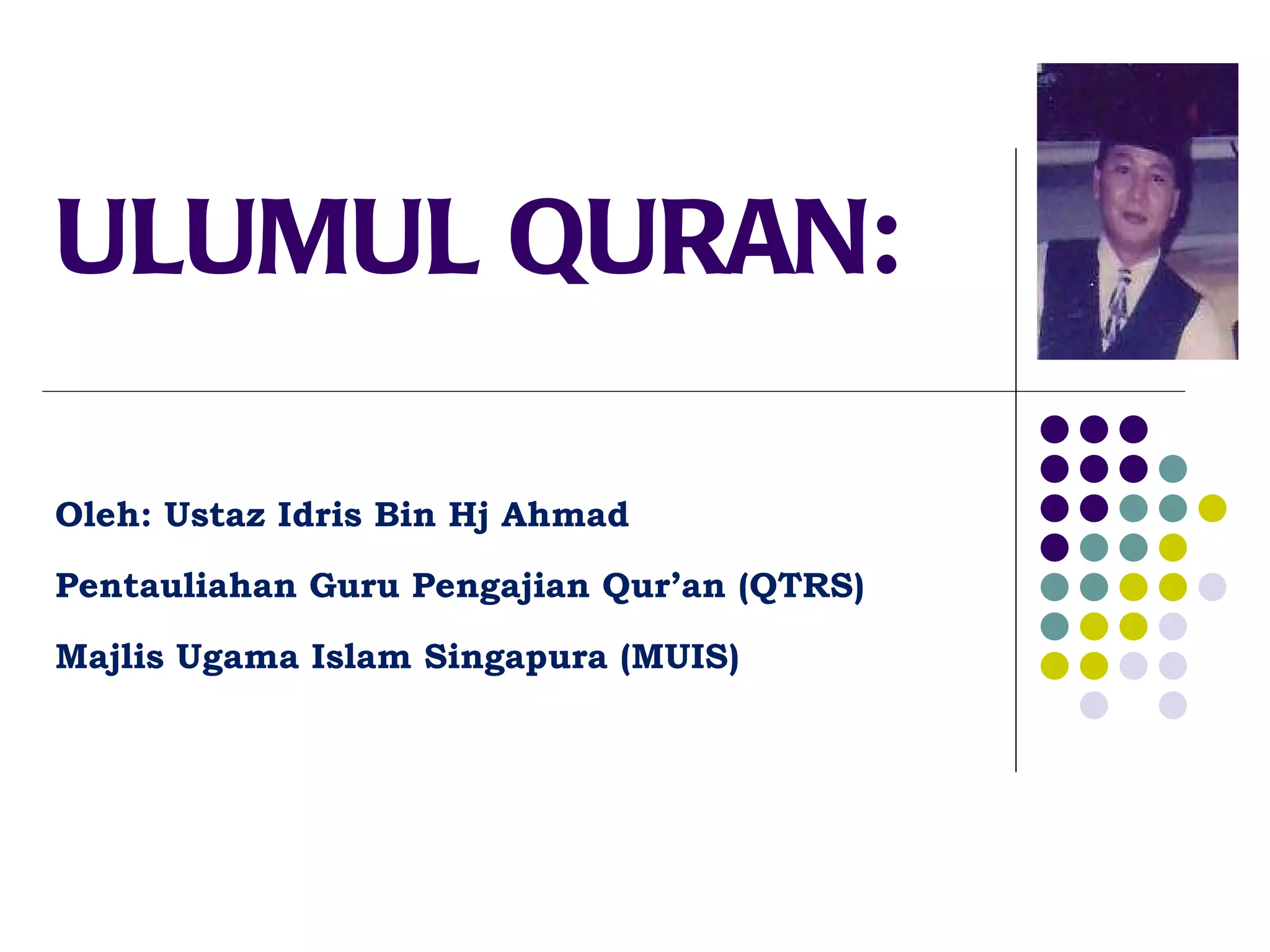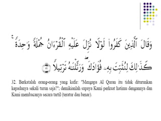 1. Dokumen membahas tentang penurunan Al-Quran, baik secara sekaligus maupun berangsur-angsur.