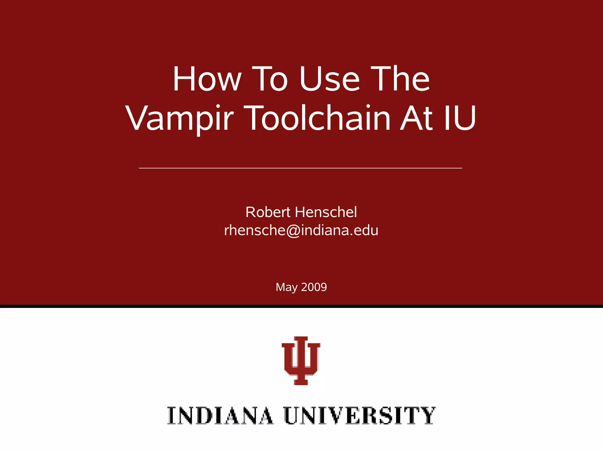 The document provides instructions for using the Vampir toolchain at Indiana University (IU) and on the BigRed supercomputer. It describes how to run Vampir and VampirServer on the Quarry and BigRed systems, including details on software environments, launching jobs, and locating trace files. Tracing with VampirTrace is also configured to work with specific compiler versions on both systems.