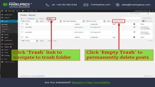 To optimize a WordPress site, essential steps include using a Content Delivery Network (CDN) to reduce loading times, enabling browser caching to store local copies of the site, and installing cache plugins to serve static files more efficiently. Additionally, it is necessary to manage the trash system and enable Gzip compression to minimize file sizes before sending to users. These strategies are crucial for improving performance, especially for sites with high traffic.