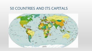 This document lists 50 countries and their capitals in 3 sections. It was created by Muhammed Nihal, a 7th grade student, as part of a school assignment to list 50 countries and capitals. The document provides the name of each country along with its corresponding capital city.