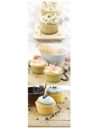 This document provides an introduction and overview of 500 Cupcakes. It discusses the basic components of cupcakes including batter, frosting, decorating, and equipment needed. It also summarizes different types of cupcakes from around the world and the basic ingredients commonly used in cupcake recipes such as eggs, butter, flour, sugar and other flavorings. The document serves as a guide to the variety of cupcakes covered in the book.