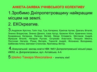 АНКЕТА-ЗАЯВКА УЧНІВСЬКОГО КОЛЕКТИВУ