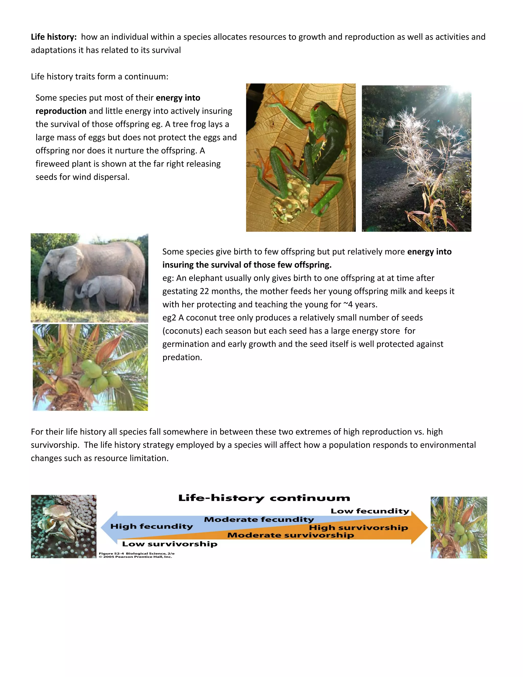 1. The document discusses factors that influence population growth rates, including birth, death, immigration, emigration, generation time, parental age, and available resources. It also discusses life history strategies and how populations grow.