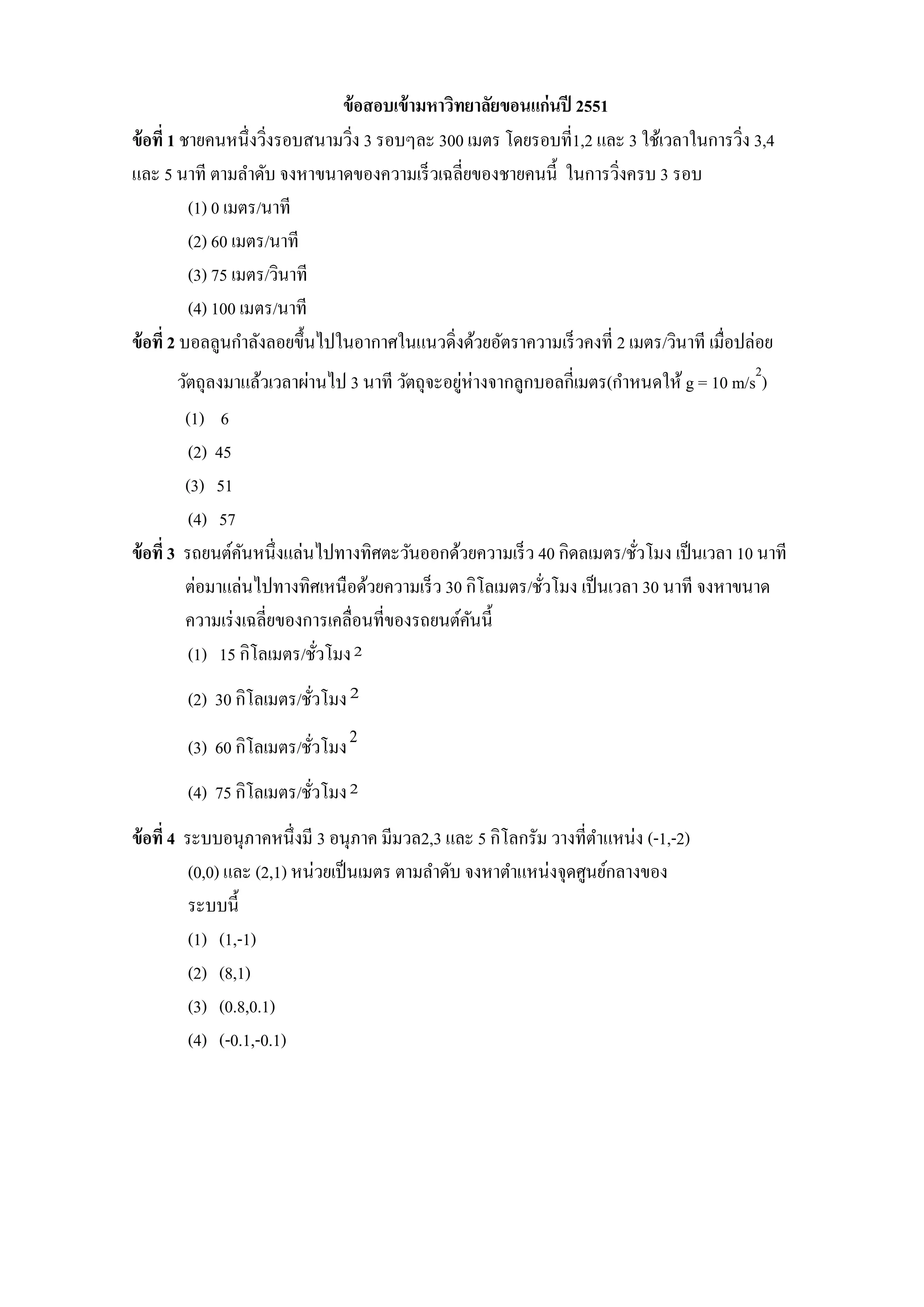 ข้ อสอบเข้ ามหาวิทยาลัยขอนแก่นปี