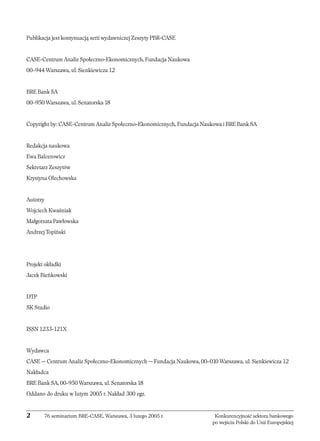 Prezentacja przedstawiona przez Andrzej Topiński, Wojciech Kwasniak i Malgorzata Pawlowska podczas 76 Seminarium BRE-CASE: Competitiveness of the Banking Sector after Poland's EU Entry ( 03.02.2005 )