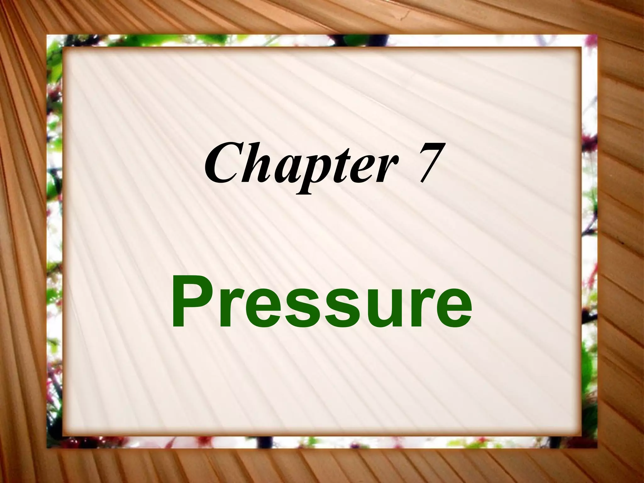 This chapter discusses pressure and its relationship to force and area. Pressure is defined as force per unit area, with the formula P=F/A. Several examples are provided to demonstrate calculating pressure given the force and contact area. Quizzes throughout assess understanding of key concepts like how elephants and ladies exert different pressures due to differences in their contact areas.