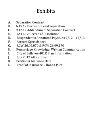 This document contains a petition for legal separation filed by Annette Cottonbetteridge against Russell Cottonbetteridge. It provides details of their 7-year marriage, 4-year-old child, date of separation in May 2017, and requests division of property, debts, maintenance, and a continuing restraining order. The petition outlines agreements between the parties regarding division of vehicles, family home, maintenance payments from Russell to Annette, and child support.