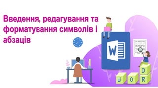 Введення, редагування та форматування символів і абзаців.