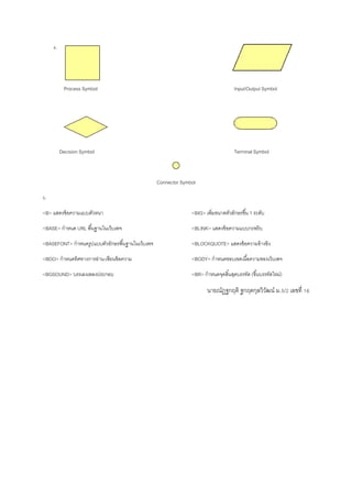 2.1 HTML คือ ภาษาหลักที่ใช้ในการเขียนเว็บเพจ โดยใช้ Tag ในการกาหนดการแสดงผล