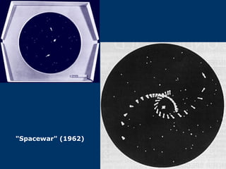 AD 52. Vídeojocs 1. 2. 3. 4. Jocs de sala recreativa ( arcade ) Xifra de negocis == indústria cinematogràfica Objectiu: adolescents 13-15 anys 5. Jocs D'acció D'esports De conducció De simulació vols, batalles Puzzles escacs, lemmings, pinball D'aventura D'estratègia (tipus SIM) De rol 6. 7. 8. 9. 10. 11. 12. 13. 14. 15. 16. 17. 18. 19. 20. 21. 22. 23. 24. 25. 26. 27. 28. 29. 30. 31. Jugar a "ser Déu" (construir entorns socials de ficció) "Sim City" (ciutat) "The Sims" (família) "Age of Empires" (batalles) "Civilization" (civilització) "Sid Meier's Pirates" (pirates) "Larry" (seducció) "Black & White" (Déu) 32. 33. 34. 35. Jocs de rol "Dragon’s Lair" (1983) Dungeons and dragons La llamada de Cthulhu (H.P. Lovecraft) Cyberpunk Director de joc Llibre de Regles Fitxes de Personatges Llibres de campanya 36. Jocs de rol Internet: Multi-User Dungeon (MUD) en equip, univers imaginari, regles > Multi-User Dimension Jocs de rol en línea massius (MMORPGs) > “EverQuest", "Sims on-line" 37. Editor's Notes #2 1 #6 29 Nascut a Whittier, CA el 1957