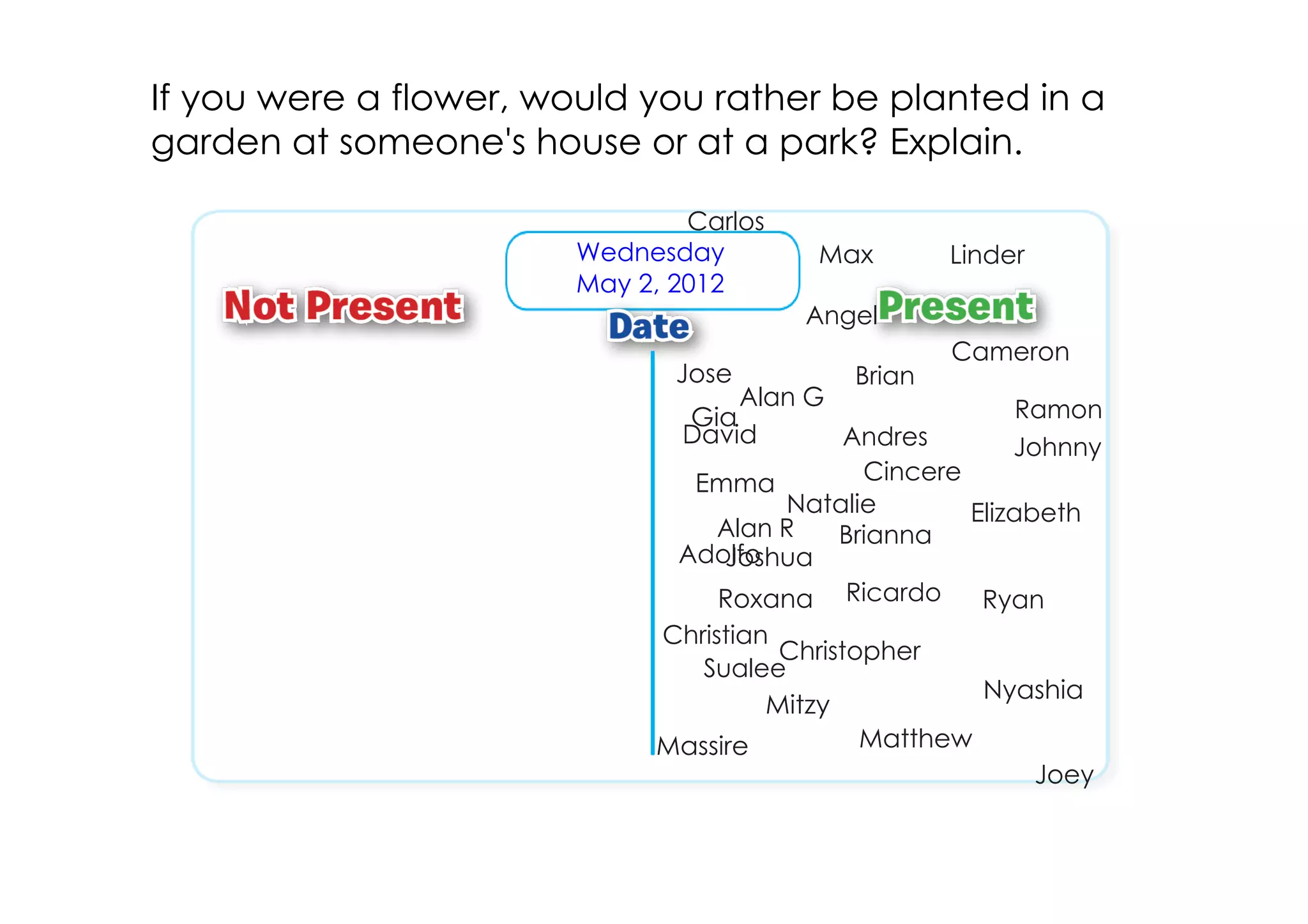 If you were a flower, would you rather be planted in a garden at someone's house or at a park? Explain.