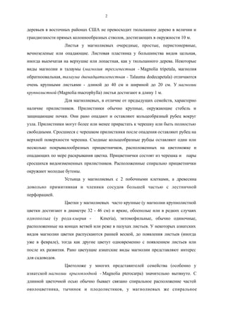 Документ описывает систематику цветковых растений, деля их на двудольные (магнолиопсиды) и однодольные (лилиопсиды) классы, а также рассматривает семейство магнолиевых, включая особенности их строения и размножения. Основное внимание уделяется морфологии, механизмам опыления и различиям между подсемействами. Важным элементом является процесс опыления, осуществляемый жуками, который влияет на междувидовую репродуктивную изоляцию.