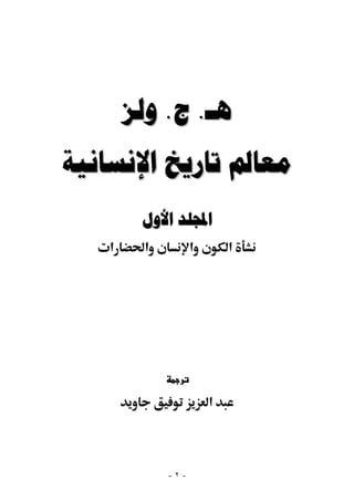 ﻓﻲ ﻫﺫﻩ ﺍﻟﻜﺘﺏ ﺤﺎﺠﺔ ﺍﻹﻨﺴﺎﻥ ﺇﻟﻰ ﻓﺭﺽ ﺴﻴﺎﺩﺘﻪ ﻋﻠﻰ ﻜل ﻤﺎ ﻴﻨﺸﺌﻪ ﻭﻴﺒﺩﻋﻪ. ﻭﺘﻘﻴ ﺍ ﺒﻬـﺫﻩ ﺩ ﺍﻟﻔﻜﺭﺓ ﻭﺘﺘﺒ ﺎ ﻟﻬﺎ ﺃﺼﺒﺢ ﻤﺩﺍﻓ ﺎ ﻴﺘﺯﻋﻡ ﻭﻀﻊ ﺍﻟﺨﻁﻁ ﻟﻤﺴﺘﻘﺒل ﺍﻟﻌﺎﻟﻡ. ﻭﻤﻊ ﺃﻨﻪ ﺒﻭﺼﻑ ﻜﻭﻨﻪ ﻋﺎﻤﻼ ﻓﻲ ﻗﻀـﻴﺔ ﹰ ﻌ ﻌ ﺍﻟﺘﻘﺩﻡ ﺍﻟﺒﺸﺭﻱ ﺒﻠﻎ ﺍﻟﺸﻬﺭﺓ ﺍﻟﻌﺎﻟﻤﻴﺔ، ﻭﻗﺩ ﺍ ﻻ ﺒﺄﺱ ﺒﻪ ﻤﻥ ﺍﻟﻤﻭﺍﻓﻘﺔ ﻋﻠﻰ ﺨﻁﺘﻪ، ﻓﺈﻥ ﺘﻨﺒﺅﺍﺘﻪ ﻜﺎﻥ ﻤﻥ ﺍﻟﻌﺴﻴﺭ ﻓﻲ ﺭ ﺒﻌﺽ ﺍﻷﺤﻴﺎﻥ ﺍﻟﺘﻭﻓﻴﻕ ﺒﻴﻨﻬﺎ ﻭﺒﻴﻥ ﺭﺴﺎﻟﺘﻪ ﻫﻭ. ﻭﻜﺎﻥ ﻭﻴﻠﺯ ﻴﺴﺘﺨﺩﻡ ﺍﻷﺩﺏ ﻟﻠﺘﻌﺒﻴﺭ ﻋﻥ ﻭﺠﻬﺎﺕ ﻨﻅﺭﻩ ﻫـﻭ ﻓـﻲ ﺍﻟﻤﺅﺴﺴﺎﺕ ﺍﻻﺠﺘﻤﺎﻋﻴﺔ ﺃﻭ ﻏﻴﺭﻫﺎ ﻭﺍﻀ ﺎ ﻓﻲ ﺍﻟﻤﻘﺎﻡ ﺍﻟﺜﺎﻨﻲ ﺼﻔﺘﻪ ﻜﻤﺤﺘﺭﻑ ﻟﻸﺩﺏ ﻭﻓﻨﺎﻥ، ﻭﻟﻜﻨﻪ ﻜﺎﻥ ﻴﺴـﺘﻁﻴﻊ ﻌ ﺍﻟﻜﺘﺎﺒﺔ ﺒﻴﺴﺭ ﻭﺭﻗﺔ ﻭﺴﻌﺎﺩﺓ ﺘﻌﺒﻴﺭﻴﺔ ﻨﺎﺩﺭﺓ ﻜﻤﺎ ﺤﺩﺙ ﻓﻲ "ﻗﻁﺭ ﺍﻟﻌﻤﻴﺎﻥ" ١١٩١ ﺍﻟﺘﻲ ﻴﺴﻠﻡ ﺍﻟﻨﺎﺱ ﺠﻤﻴ ﺎ ﺃﻨﻬﺎ ﻤﻥ ﻌ ﺃﺤﺴﻥ ﺍﻟﺭﻭﺍﻴﺎﺕ ﺍﻟﻘﺼﻴﺭﺓ ﻓﻲ ﻟﻐﺘﻨﺎ ﺍﻹﻨﺠﻠﻴﺯﻴﺔ. ﻭﻜﺘﺎﺏ "ﻤﻌﺎﻟﻡ ﺍﻟﺘﺎﺭﻴﺦ" ﺍﻟﺫﻱ ﺒﻴﻥ ﻴﺩﻴﻙ ﻴﻌﺩ ﺃﺤﺩ ﺃﺸﺩ ﺍﻟﻤﺤـﺎﻭﻻﺕ ﻁﻤﻭ ﺎ ﺇﻟﻰ ﺘﻭﻀﻴﺢ ﺍﺴﺘﻤﺭﺍﺭﻴﺔ ﺍﻟﺘﺎﺭﻴﺦ ﻤﻨﺫ ﺒﺩﺍﻴﺔ ﺍﻟﺤﻴﺎﺓ ﺤﺘﻰ ﻤﻌﺎﻫﺩﺓ ﻓﺭﺴﺎﻱ ٩١٩١ ﻭﺤﺘـﻰ ﻨﻬﺎﻴـﺔ ﺍﻟﺤـﺭﺏ ﺤ ﺍﻟﻌﺎﻟﻤﻴﺔ ﺍﻟﺜﺎﻨﻴﺔ، ﻭﺤﺘﻰ ٠٩٩١، ﻭﺒﺎﻟﺘﻌﺩﻴﻼﺕ ﺍﻷﺨﻴﺭﺓ ﻓﻲ ﺍﻟﻁﺒﻌﺎﺕ ﺍﻟﺤﺩﻴﺜﺔ. ﻭﻫﻭ ﻨﻭﻉ ﻤﻤﺘﺎﺯ ﻤﻥ ﺇﻀﻔﺎﺀ ﺍﻟﻁﺎﺒﻊ ﺍﻟﺸﻌﺒﻲ، ﻟﻪ ﺼﻠﺔ ﺨﺎﺼﺔ ﻭﻟﻪ ﻗﻴﻤﺔ ﺘﺭﺒﻭﻴﺔ ﻁﺭﻴﻔﺔ. ﻜﺎﻨﺕ ﺍﻟﻤﻌﺎﻟﻡ ﻫﻲ ﺍﻟﻤﺠﻠﺩ ﺍﻷﻭل ﻤﻥ ﺜﻼﺜﻴﺔ ﺨﻁﻁﺕ ﻹﻀﻔﺎﺀ ﺍﻟﺸﻌﺒﻴﺔ ﻋﻠﻰ ﺍﻷﻴﺩﻭﻟﻭﺠﻴﺎ ﺍﻟﺘﺎﺭﻴﺨﻴـﺔ ﻭﺍﻟﻌﻠﻤﻴـﺔ ﻭﺍﻻﺠﺘﻤﺎﻋﻴﺔ ﺍﻟﺴﻭﺴﻴﻭﻟﻭﺠﻴﺔ ﺒﺎﻟﻁﺭﻴﻘﺔ ﺍﻟﻤﻨﺎﺴﺒﺔ ﻟﻤﻌﺎﻟﺠﺔ ﺤﺎﻟﺔ ﻋﺎﻟﻤﻴﺔ ﺸﺎﻤﻠﺔ. ﻓﺄﻤﺎ ﺍﻟﻤﺠﻠﺩﺍﻥ ﺍﻵﺨﺭﺍﻥ ﺍﻟﻠﺫﺍﻥ ﺃﻋﻘﺒﺎ ﺍﻷﻭل ﻓﻬﻤﺎ ﻓﻥ ﺍﻟﺤﻴﺎﺓ ﻓﻲ ٩٢٩١ ﺍﻟﺫﻱ ﻜﺘﺏ ﺒﺎﻟﺘﻌﺎﻭﻥ ﻤﻊ ﺍﻟﺩﻜﺘﻭﺭ ﺠﻭﻟﻴﺎﻥ ﻫﻜﺴﻠﻲ ﻭﺍﺒﻨﻪ ﺝ. ﺏ. ﻭﻴﻠـﺯ .G. P Wellsﻭﻜﺘﺎﺏ "ﻋﻤل ﺍﻹﻨﺴﺎﻨﻴﺔ ﻭﺜﺭﻭﺘﻬﺎ ﻭﺴﻌﺎﺩﺘﻬﺎ" ٢٣٩١ ﻭﺼﺩﺭ ﻟﻪ ﺃﻴ ﺎ ﻜﺘﺎﺏ "ﺘﺠﺭﺒﺔ ﻓﻲ ﺍﻟﺴﻴﺭﺓ ﺍﻟﺫﺍﺘﻴـﺔ" ﻀ ﻭﻗﺩ ﻨﺸﺭ ﻓﻲ ٤٣٩١. - ٣٩٢ -
