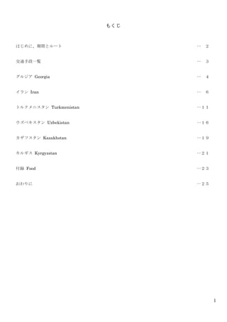 1 もくじ はじめに、期間とルート 交通手段一覧 グルジア Georgia イラン Iran トルクメニスタン