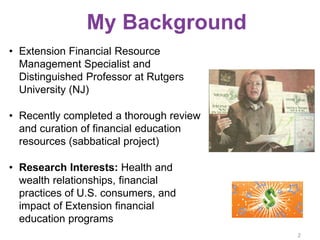 This document provides a summary of 55 interactive personal finance learning activities that were reviewed and curated by Barbara O'Neill, a financial education specialist. Some of the activities described include financial coat of arms, bingo, Jeopardy-style games, creating videos or songs about financial topics, case studies, simulations, quizzes, and activities to explore values and risk tolerance. The goal is to share effective personal finance educational resources and allow participants to discuss which activities they find most useful.