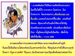 ๑. ขอให้รัฐบาลและคนไทยทั้งชาติร่วมกันแก้ไขปัญหายาเสพติดที่มีความ