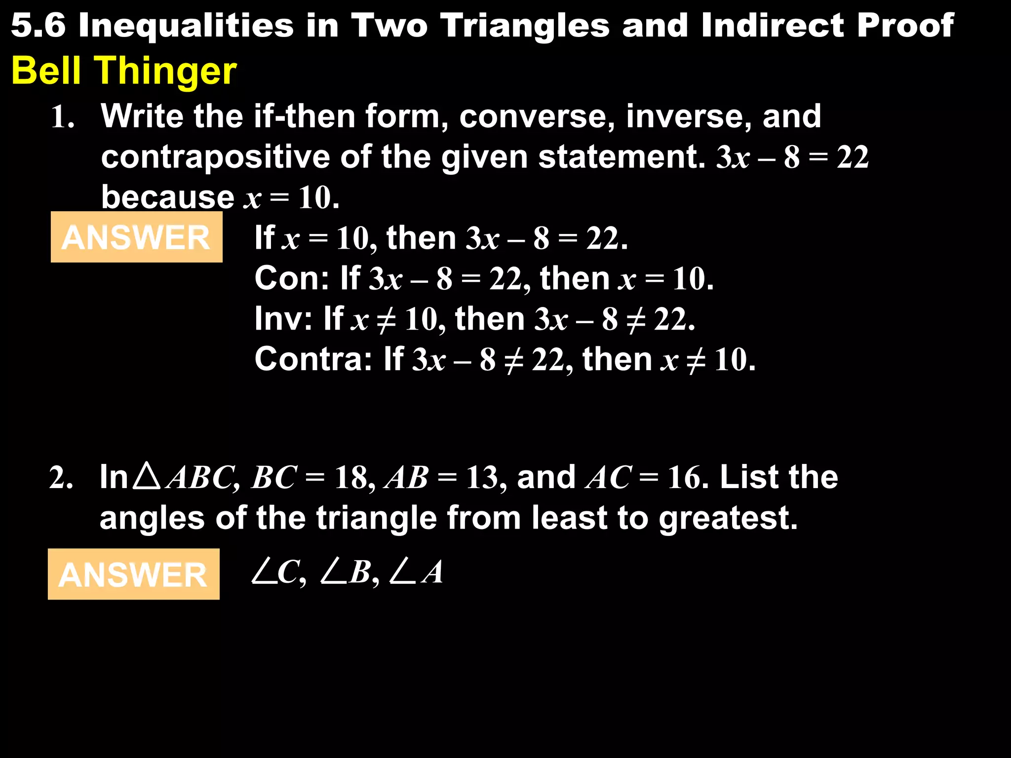 This document discusses indirect proofs and inequalities in triangles. It begins with examples of using indirect proofs to show that an odd number is not divisible by 4 and to prove Theorem 5.14. It then provides guided practice problems applying these concepts and techniques. The document concludes with an exit slip assessing understanding of angle and side comparisons in triangles. Overall, the document covers how to structure indirect proofs and apply triangle inequality theorems.