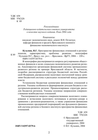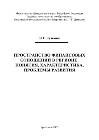 Монография И.Г. Кузьмин рассматривает финансовые отношения в Ярославской области, анализируя организацию местной финансовой системы и её взаимосвязь с федеральным уровнем. Основное внимание уделено бюджетной асимметрии, управлению налогами и финансами промышленных предприятий как основополагающим элементам региональной финансовой системы. Документ также обсуждает необходимость учета уникальных характеристик региона для успешной реализации экономических реформ.