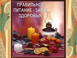 Документ обсуждает важность правильного питания для поддержания здоровья, подчеркивая необходимость регулярных приемов пищи и разнообразия в рационе. Он также выделяет основные пищевые вещества, их функции, а также влияние различных факторов на потребности организма в энергии. Рекомендуется соблюдать баланс между белками, жирами и углеводами, а также учитывать качество и свежесть продуктов.