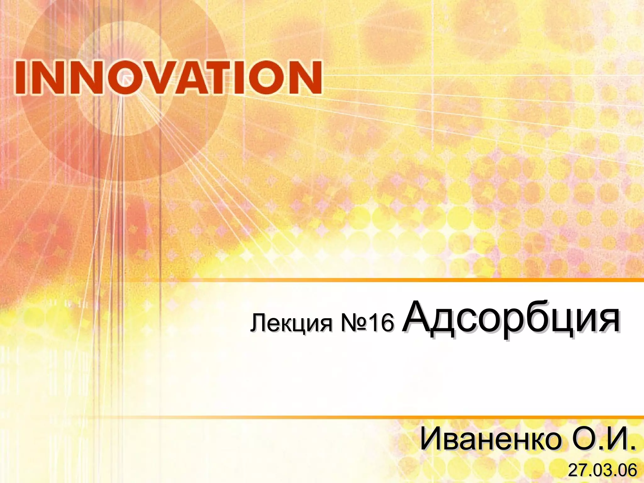 Лекция посвящена процессам адсорбции, их медико-биологическому значению и важным понятиям, связанным с этим процессом, включая сорбенты, сорбтивы и поверхностное натяжение. Рассматриваются принципы адсорбции, влияющие факторы, такие как размеры поверхности адсорбента, температура, и тип сорбента, а также уравнения Фрейндлиха и Ленгмюра. В заключение отмечается значение адсорбции в хроматографии и детоксикации организма.