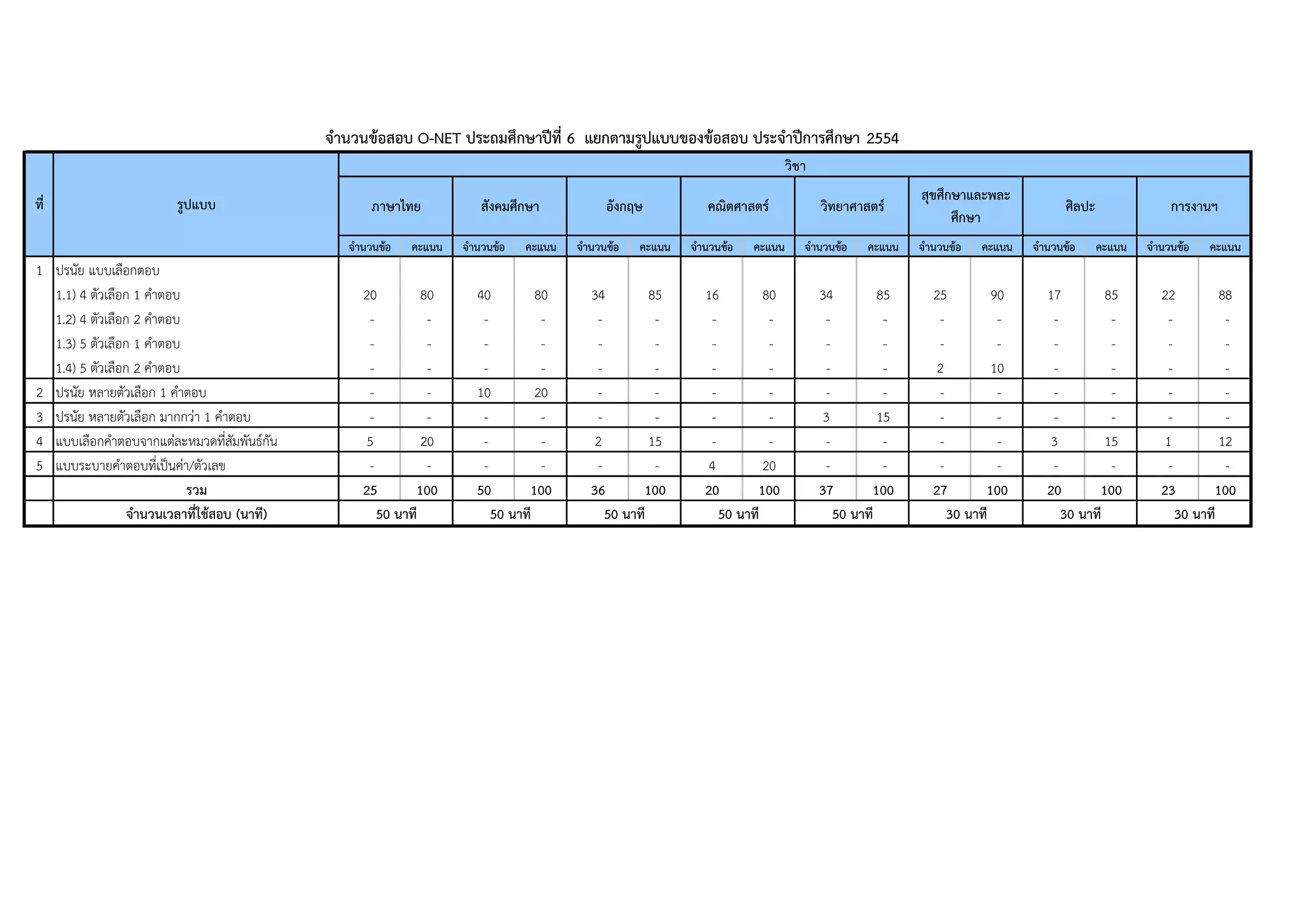 จำนวนข้อสอบ 0 net ม. 6 ปี 2554