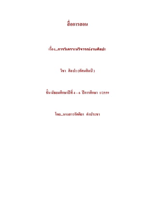 สื่อการสอน เรื่อง...การวิเคราะห์วิจารณ์งานศิลปะ วิชา ศิลปะ(ทัศนศิลป์ ) ชั้นมัธยมศึกษาปีที่4