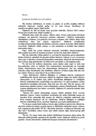 çekicidir. Ayrıca inanmayanların ahiretteki perişanlıklarından da birçok kesit