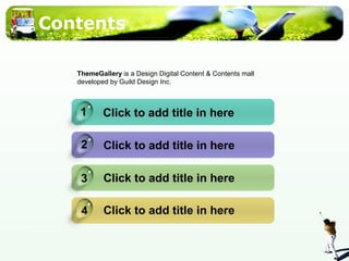 The document is a template for a PowerPoint presentation about ThemeGallery, a digital content and design company. It includes sections for titles, text, charts and descriptions. Placeholders throughout the template allow the user to customize the presentation by adding their own text, images and content. Instructions are provided on how to apply styles and content to all slides simultaneously using the slide master.