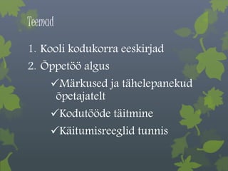 spordi-, tehnilisi ja muid vahendeid kooli kodukorras