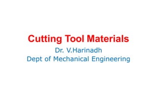 The document discusses different types of cutting tool materials used in machining. It describes: