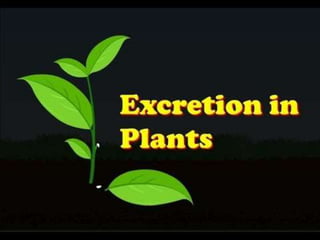 This document discusses excretion in animals and plants. In animals, metabolic processes produce carbon dioxide, water, and nitrogenous waste from proteins and nucleoproteins that must be excreted as it is toxic. There are three types of excretory products in plants - oxygen from photosynthesis, carbon dioxide and water from respiration, and organic and inorganic compounds that are either stored or removed when necessary.