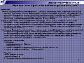 #14 План-конспект уроку з теми “Природні зони Африки. Вологі екваторіальні ліси (гілеї)”