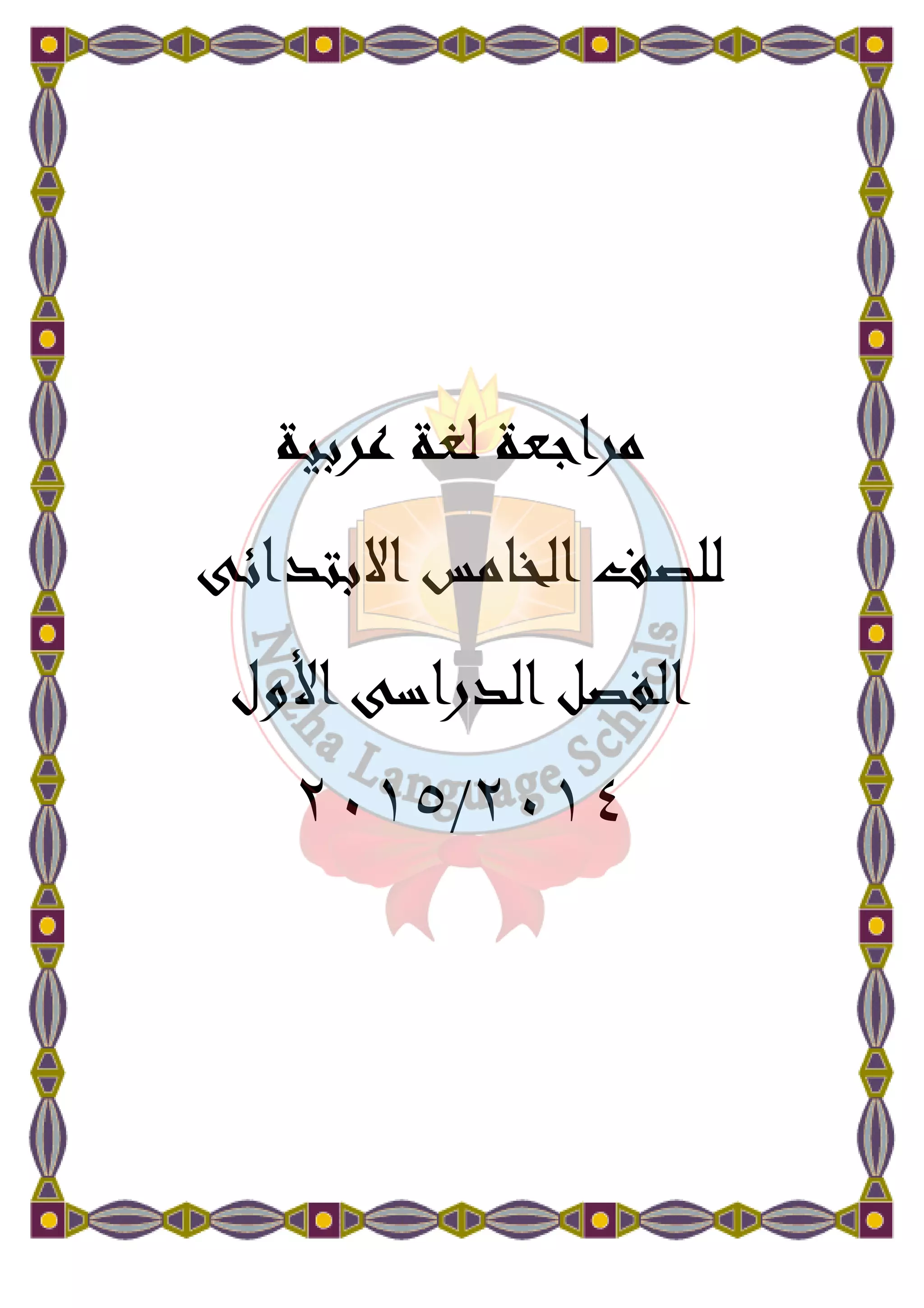 تتضمن الوثيقة مراجعة للغة العربية للصف الخامس، متضمنة أسئلة حول نصوص أدبية ودروس تعليمية في قواعد اللغة، مما يعزز مهارات الفهم والتعبير لدى الطلاب. تركز الأسئلة على تحليل اللغة والمفردات، وكذلك فهم المعاني والتعبيرات المستخدمة في النصوص. كما تتناول الوثيقة بعض الفصول المتعلقة بالعجائب الطبيعية والتجارب والخيال.