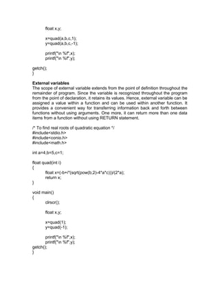 - Static variables are local to the function they are declared in but retain their value between calls.