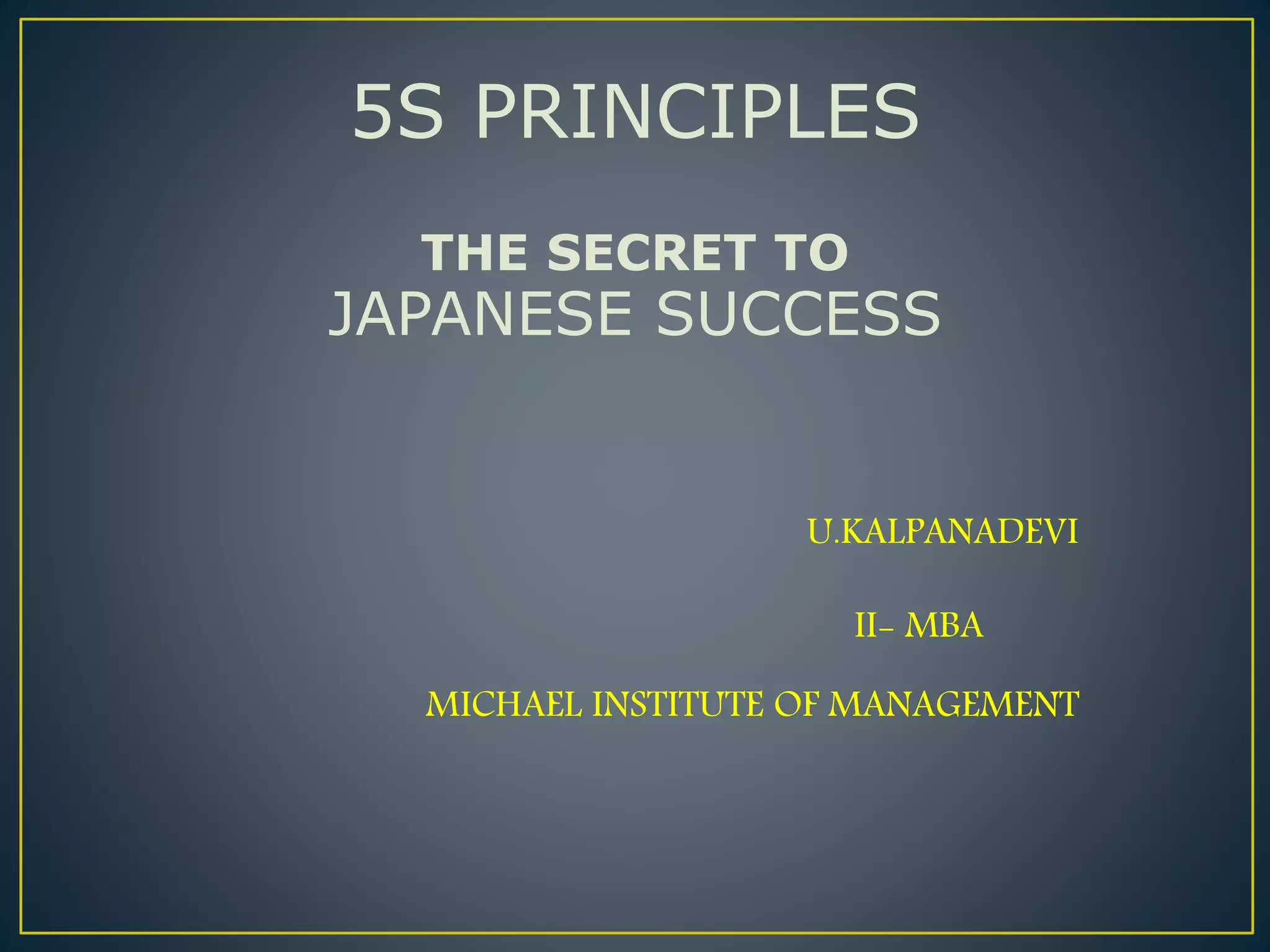 The document discusses 5S principles and the 8 disciplines of problem solving. 5S principles were developed in Japan and include Sort, Set in Order, Shine, Standardize, and Sustain to create a better working environment and consistently high quality processes. The 8 disciplines of problem solving include Plan, Use a Team, Define the Problem, Develop Interim Containment, Determine Root Causes, Choose Permanent Corrections, Implement Corrective Actions, and Take Preventive Measures to identify, correct, and eliminate recurring problems following the PDCA cycle. Both methods aim to improve processes, productivity, and quality.
