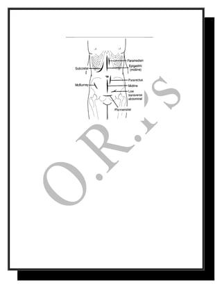 The document summarizes key points from a teaching module on employee health policies, medical terminology, and common surgical procedures. It outlines standard precaution policies for preventing transmission of bloodborne pathogens. It defines anemia and lists its common symptoms and treatment options. It also describes McBurney's incision, including its historical context, location, and use for appendectomy surgery.