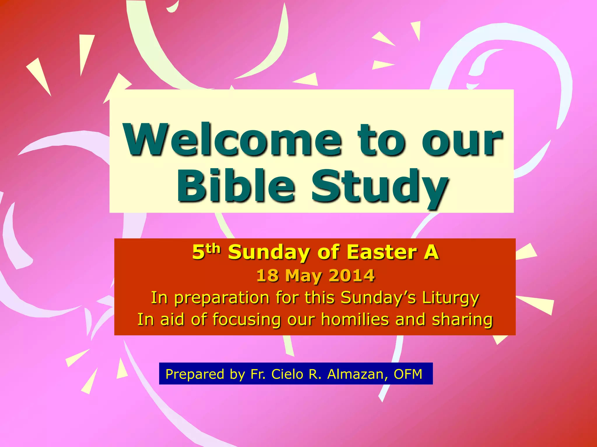 The document provides information for an upcoming Bible study on the 5th Sunday of Easter, including summaries and commentary on the readings.