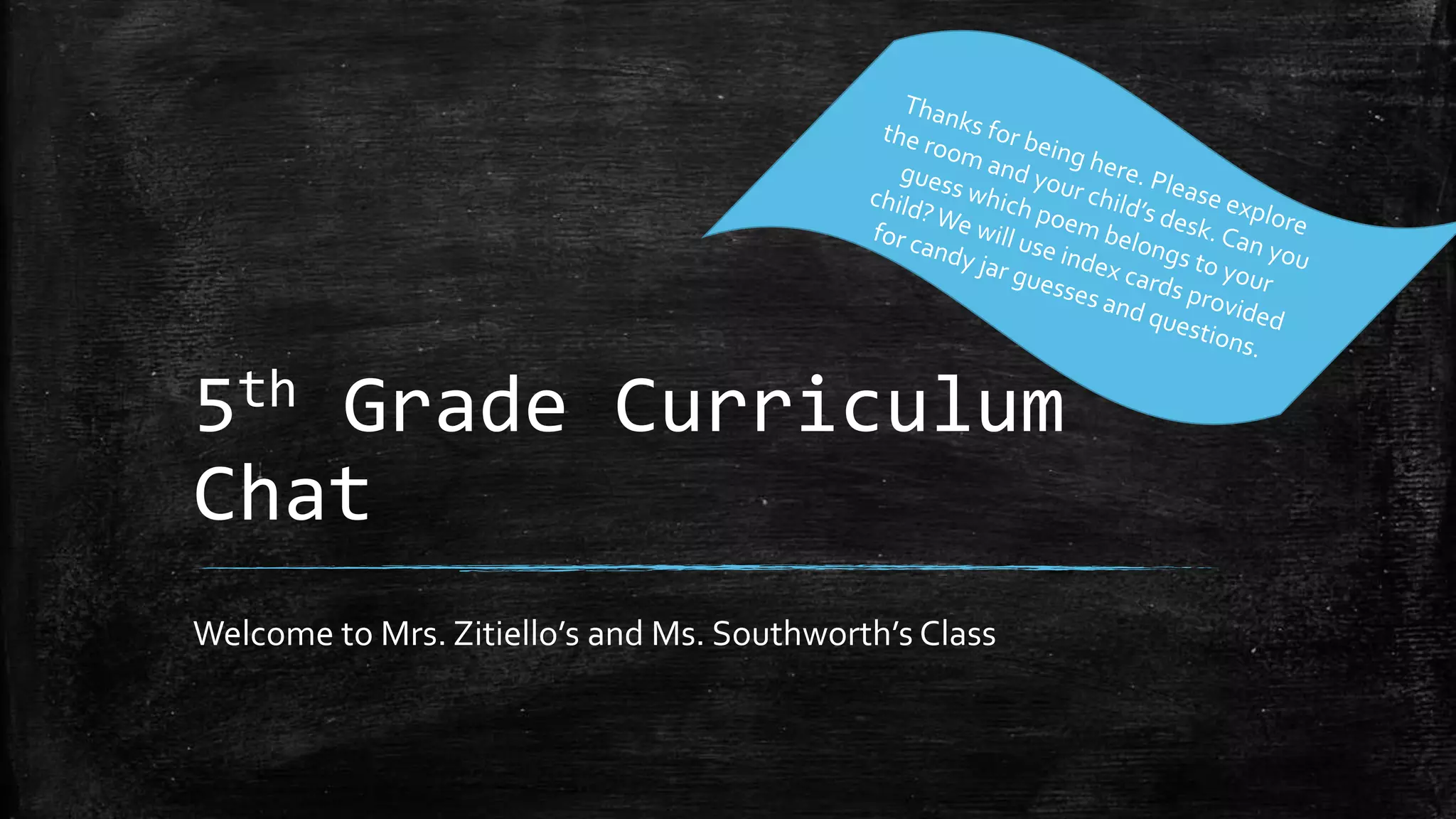 This document provides an overview of the 5th grade curriculum for Mrs. Zitiello and Ms. Southworth's class. It discusses the teachers' backgrounds and goals for students. The curriculum will focus on English/language arts, math, science, social studies, and technology. Students will be expected to complete around 50 minutes of homework per night, including independent reading. Formative and summative assessments will be used to track student progress. The document also provides information on state standards, standardized testing, and differentiation for gifted students.