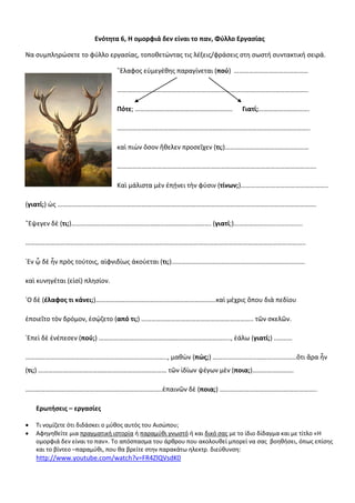 Ενότητα 6, Ηομορφιά δεν είναι το παν, Φύλλο Εργασίας